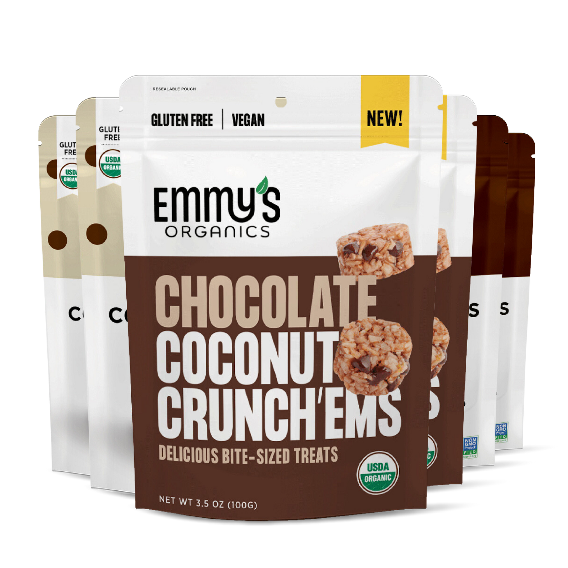 Includes: 2 Bags of Chocolate Chip Coconut Cookies, 2 Bags of Dark Cacao Coconut Cookies, & 2 Bags of Chocolate Crunch'Ems.